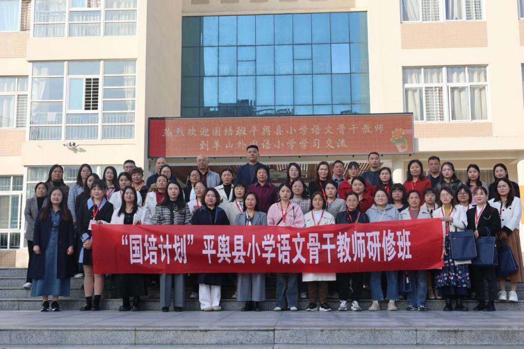 2024年11月6日下午,“国培计划(2024)”(平舆县)小学语文骨干教师研修班的学员在bv1946伟德官网张姝老师的带领下,来到羊山外国语小学开展观摩研学活动,受到了羊山外国语小学校长老师等人的热烈欢迎。