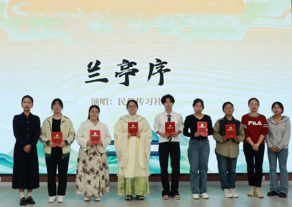 活动首先以国学经典研教社带来的舞蹈《烟雨行舟》拉开序幕,舒缓的音乐伴随着优美的舞姿,将我们带入诗画江南的意境。 接着由李春燕同学带来《劳动诗分享》,演绎着一个又一个原始的梦幻,折射出一个又一个劳动的辉煌。随后是赵金格同学带来的演讲《拾起那片诗词的月光》,从先秦时期的诗经与楚辞,讲到现代诗人对诗词的传承,承载了古往今来人世间的悲欢离合。紧接着是民宿文化传习社带来的《神女劈观》,开口一句戏腔悠扬,诉说着京剧历史文化的深厚底蕴。之后是祐亚菊同学带来的演讲《诗词之美,古今共赏》,古今相连,紧跟时事,传递出中华诗词生生不息的魅力。然后是王嘉欣同学带来的《赓续诗词文脉,擘画华夏未来》,是诗人内心世界的外在投射,透过诗词可一窥时代最为伟大灵魂的内核。紧接着是张晶晶同学带来的诗词演讲《连接,惊人的魂魄》,寻文化之根,找诗歌之魂,探寻别样的烟火人间。之后是郭淼同学带来的演讲《诗经中没有女性》感悟诗经带来的女性价值观的反思,最后以民俗文化传习社带来的歌曲《兰亭序》结束活动。