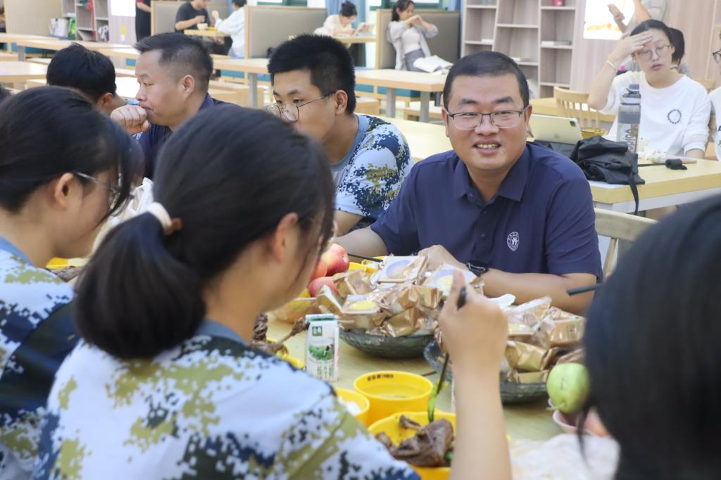 “同学们军训累不累,远离家乡求学还习惯吗?”周贤亮见面第一句话,就拉近了与同学们的距离。周贤亮与同学们边吃边聊,仔细询问每一位同学的姓名、专业和家乡,认真倾听同学们对于师大生活的感受。同学们畅所欲言,围绕大学生专业学习、素质提升、社会实践等方面问题进行交流,周贤亮耐心地与学生交流想法,帮助学生答疑解惑。