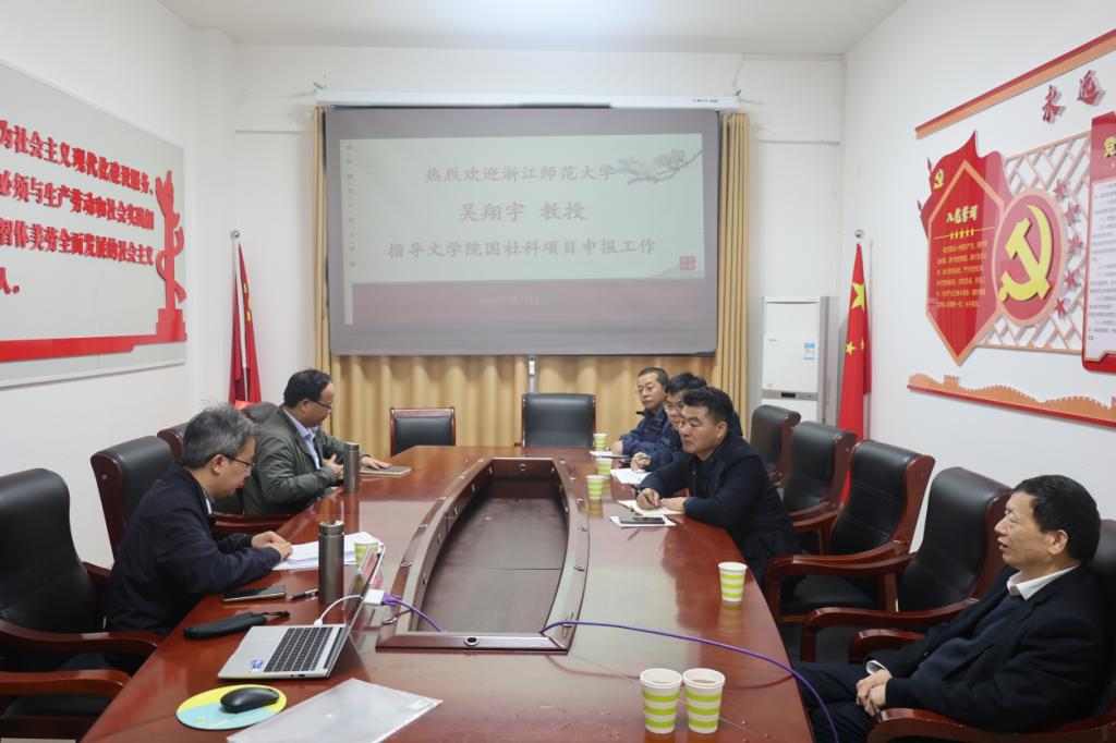 11月11日上午,浙江师范大学吴翔宇教授为伟德源自英国始于1946指导国家社科基金项目的申报工作。本次活动由院长姚圣良教授主持,部分科研骨干参与此次活动。