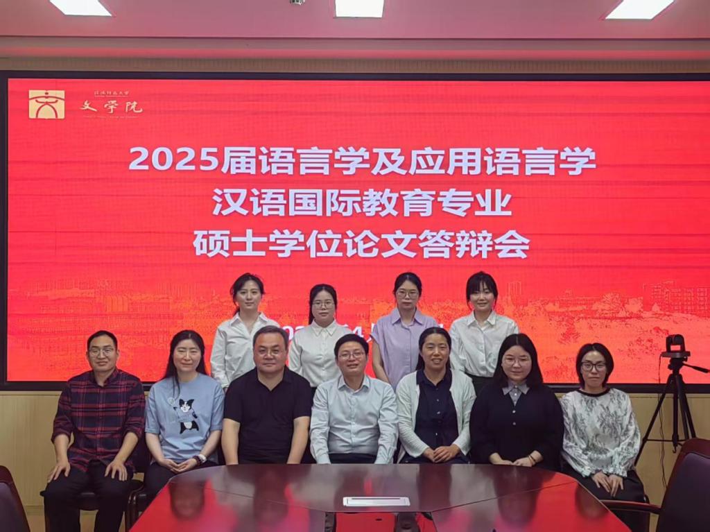 4月27日,语言学及应用语言学和汉语国际教育2025届硕士研究生学位论文答辩会在人文楼三楼会议室举行。南宁师范大学大学杨绪明教授担任本组答辩主席,答辩委员有张言军教授、牛利副教授、萧晟洁博士、高晓慧博士、谷少华博士,答辩秘书由陈文君博士担任。