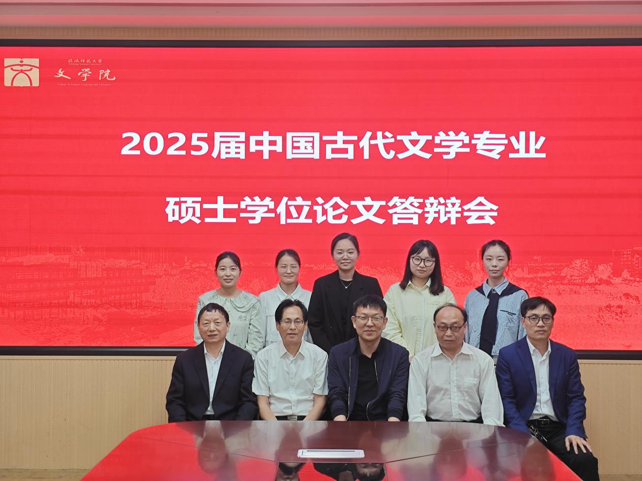 4月24日下午,中国古代文学专业2025届硕士研究生学位论文答辩会在人文楼三楼会议室顺利举行。答辩主席由河南大学杨亮教授担任,答辩委员由金荣权教授、张振龙教授、姚圣良教授、朱国伟副教授担任,刘宁担任答辩秘书。