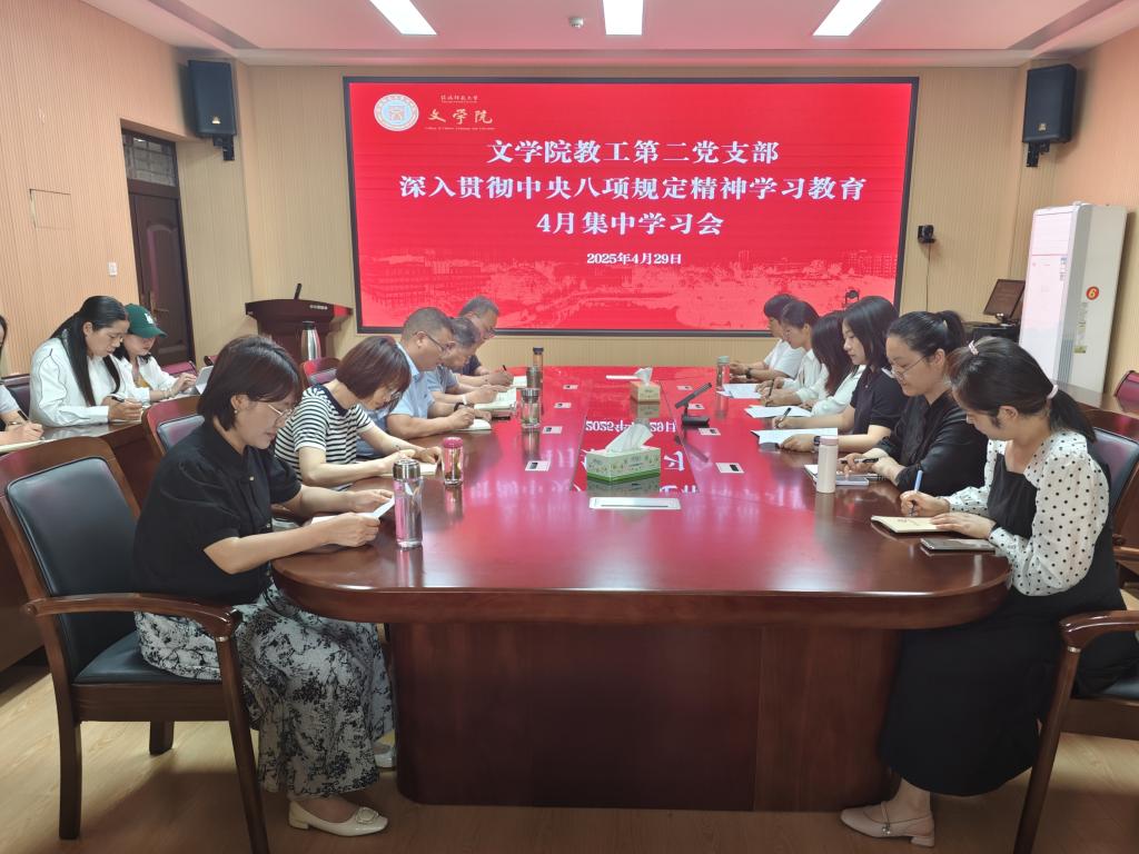 4月29日下午,伟德源自英国始于1946教工第二党支部召开深入贯彻中央八项规定精神学习教育4月集中学习会,第二党支部全体党员参加会议,党委书记周贤亮以普通党员身份参加活动。会议由伟德源自英国始于1946教工第二党支部书记饶雪主持。