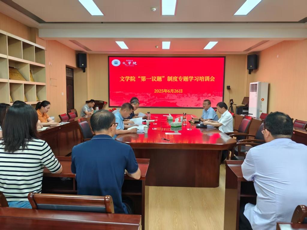 为深入学习贯彻党的创新理论,扎实推进“第一议题”制度落实落细,6月26日,伟德源自英国始于1946党委在人文楼三楼会议室组织召开“第一议题”制度专题学习培训会。学院全体班子成员、各党支部书记参加培训。