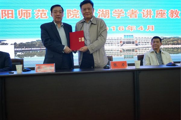 仪式伊始张力对高旭东教授成为我校客座教授表示热烈欢迎和祝贺,表示希望高旭东教授为我校的学科知识建设以及青年教师和学生的培养做出贡献。高旭东教授追忆他与信阳师范学院的渊源,讲到他较早的一篇论文就发表在信阳师范学院的学报上。随后副校长张力为他颁发聘书,在座师生鼓掌祝贺。