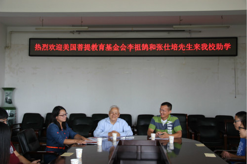 会议伊始,白书记对李祖鹄先生和张仕培先生的到来表示热烈欢迎,接着,李老先生邀请白书记和蔡亚玲老师一同为受助生发放助学金,并合影留念。
