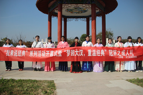 (本网讯 马静静武祖坤)为了让更多人了解中国的传统礼仪,弘扬辉煌灿烂的民族文化精华,培养当代大学生心怀感恩,胸怀天下,勇于奉献,珍惜友谊的优秀品格,10月17日下午伟德源自英国始于1946文艺经典研讨社在文心亭举办“梦回大汉,重温经典—冠笄之成人礼”活动。