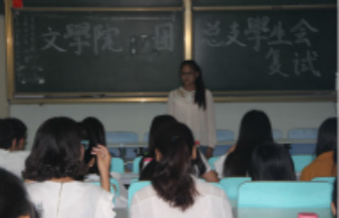 (本网讯许霏邓鲁豫)谦谦学子赴学院,学子谦谦入校园。为筛选出能力过硬、综合素质高的团总支学生会干事,为学子提供一个锻炼自己服务他人的平台,继9月13日初试之后,我院于9月14晚在人文楼409和410教室同时开展团总支学生会招新复试活动。期间,团总支老师李晓云、许霏应邀同来自我院的40余名学生会干部和近120名新生参加了此次复试。