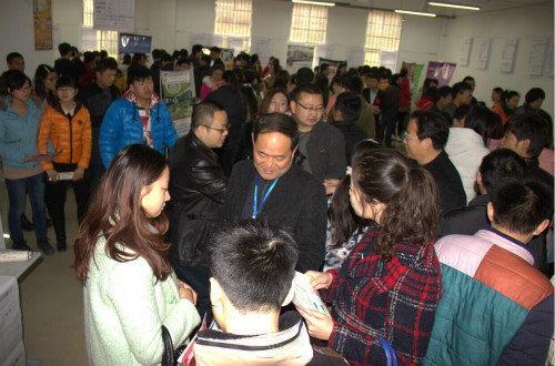 双选会现场,人流涌动,毕业生求职热情高涨。参加本次招聘会的用人单位涵盖了教育、通讯、企业、媒体等多个领域,招聘单位向前来咨询的大学生详细介绍本单位的运营状况、工资待遇和工作环境等问题,同时也提出了应聘者应具有的各种素质和能力。部分有意向的同学与就业单位签订就业合同。