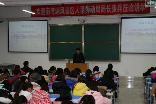 12月11日下午,应伟德源自英国始于1946和外国语学院的邀请,信阳市南湾湖风景区人事局局长张兵在社科楼324教室作了一场题为“结构化面试技巧”的讲座。讲座由外国语学院党总支副书记陈铭主持。