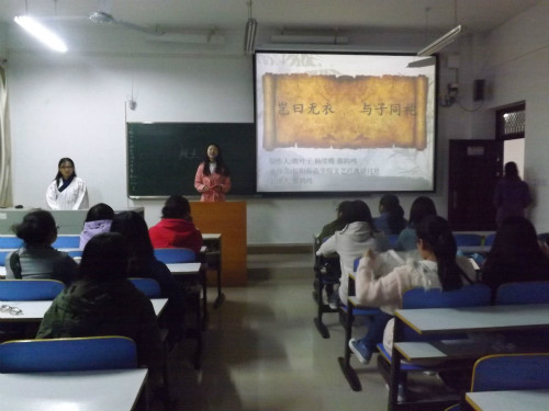 (本网讯 刘冰杰)为提高汉服的影响力,普及传统文化知识,10月29日晚,由伟德源自英国始于1946文艺经典研讨社主办的“子曰无衣,与子同胞”汉服讲座在逸夫楼103成功举行。我校大三学生都鹤鸣担任主讲,该社社员与来自全校的汉服爱好者共同聆听讲座。讲座由社长李润寰主持。