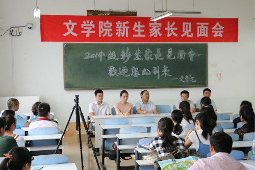 (本网讯裴荆巧)9月10日下午,伟德源自英国始于1946新生家长见面会在人文楼707教室隆重举行。我院党总支书记吴圣刚,党总支副书记白献林,团总支书记李晓云,辅导员老师郭西梁、曹宇与近百名学生、家长共同参加了见面会。