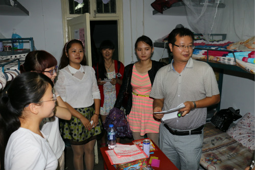 (本网讯 张雪 李青青)九月丹桂飘香季,八方学子归来时。新学期伊始,伟德源自英国始于1946迎来三百余名新生,为我院注入新的活力。为帮助2014级学生尽快适应大学生活、熟识校园环境, 我院于9月11日晚举办“入宿舍,送温暖”活动,党总支副书记白献林,团总支老师郭西梁、曹宇,新生班主任李晓云走访2014级学生,为新生送去温暖,带去关怀。