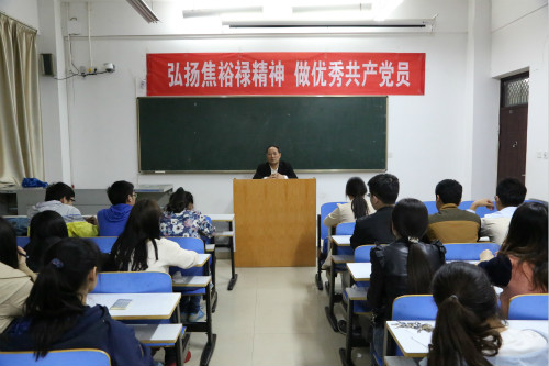 (本网讯 高笑蕊)为深入开展党的群众路线教育实践活动,扎实推进伟德源自英国始于1946党员对象思想教育工作,4月24日晚,伟德源自英国始于1946党总支特在逸夫楼101教室举办“弘扬焦裕禄精神,做优秀共产党员”主题教育实践活动。伟德源自英国始于1946党总支书记、院长吴圣刚为现场党员及预备党员作学习报告,并与同学们共同观看了影视作品《焦裕禄》。
