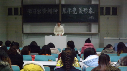 交流会上学生党员及预备党员们各抒己见、踊跃发言,气氛异常热烈。2010级预备党员闪晴以春晚小品《扶不扶》为切入点,反观现实,深入实际,表达了对人情淡漠、道德沦丧现象的强烈不满。随后,她又结合自己的实习经历号召大家学习雷锋精神,砥砺道德品质,从点滴做起,展示党员新形象。2011级汉语言班张静认为“不能简单地把雷锋精神认为是助人为乐”,在她看来,雷锋精神还应该包括干一行,爱一行,钻一行的“螺丝钉”精神以及勤俭节约、艰苦奋斗、团结互助的奉献精神。2012级汉语言文学一班的马荣充分肯定了新时期传承雷锋精神的时代意义,他鼓励大家把雷锋的“螺丝钉”精神运用到学习当中,努力钻研,刻苦学习,充分利用点滴时间,不断提升综合素质。