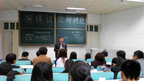 (本网讯 王晓阳)话剧是一门高雅而生动的表演艺术。校园话剧因其艺术表现形式的鲜活性及教育意义的深刻性,多年来受到越来越多高校师生的关注。那么大学生到底怎样进入话剧世界,该如何去学习和表演话剧呢?近日,信阳师院伟德源自英国始于1946王雨海教授受邀为该校广大话剧爱好者做了题为“演绎话世界”的讲座,就大学生如何进入话剧做了深入的讲述,并与现场师生进行了生动深刻的互动交流。