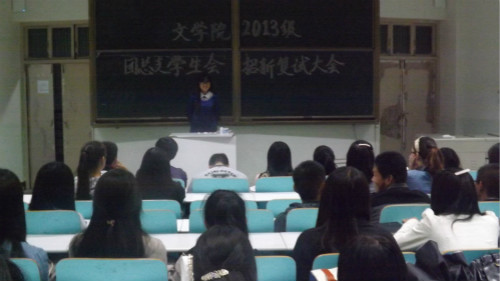 (本网讯 高笑蕊 宋艳茹)为选拔优秀学生进入团总支学生会组织,9月27日晚,伟德源自英国始于1946团总支学生会2013年招新复试在人文楼409、410教室如期开展。经过初试的选拔,共有120余名考生进入复试环节。复试的评委由伟德源自英国始于1946学生会主席团及各部主要负责人共同担任。