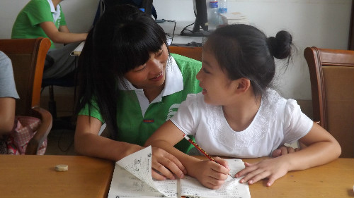 课间休息时间,志愿者与孩子们亲密互动,讲述童话故事或是讲述彼此的暑假趣事,在欢声笑语中,他们增进了了解,建立了深厚的感情。