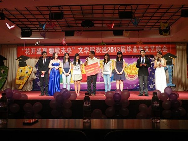 (本网讯张倩倩张晓漫) 细数流年回忆美好大学生活,曼舞青春欢送离校毕业生。6月1日晚,伟德源自英国始于1946“花开盛夏,骊歌未央”欢送2013届毕业生文艺晚会在理科楼报告厅隆重举行。学生处处长岳宗德、社科办主任金荣权、伟德源自英国始于1946党总支书记、院长吴圣刚、党总支副书记白献林、副院长沈文慧、团总支书记冯正强以及伟德源自英国始于1946部分老师应邀出席,与700余名学生共同观赏了晚会。晚会正式开始前,吴圣刚院长代表伟德源自英国始于1946接受了来自该院2013届全体毕业生的捐赠。赠品为《世界文学名著典藏》147册和《中国新诗总系》10卷,总价值为4000余元。