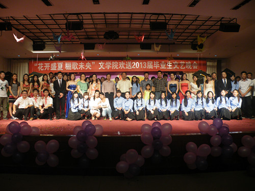 “精心的准备,蕴含着每一个人四年的情谊;精彩的演出,呈现着大家四年的风采。”舞台两侧的微博墙在整场晚会中不断更新,以另一种方式传达着大家对2009级毕业生的赞美和祝愿。整场晚会情景交融、高潮迭起,现场荧光闪烁、气氛热烈;给毕业生送去了欢歌笑语,美好祝福,将成为师生之间共同的珍贵回忆.