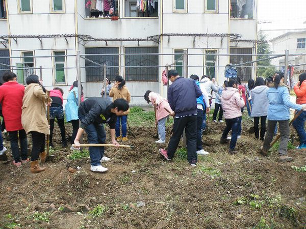 在小组长的安排下,同学们分工明确,各司其职。由于昨天下过雨的缘故,泥土还很潮湿,黏度很大,这给同学们的翻土工作增加了很大的难度。但他们不怕苦不怕累,干得热火朝天。他们个个双手交错握住铁锨,身子前倾,再用脚用力将铁锨嵌入土里,两臂控制铁锨往上一撅,就这样一直重复着这几个动作,不一会儿,平整的土地表面便堆满了大小不等的土块,然后他们再将刨出的土块移到路边。青校成员大多数是女生,这样的体力活对她们来说确实是个不小的挑战。但她们没有抱怨,也没有退缩,迅速地用铁锹挪动土块。在同学们齐心协力的努力下,一个多小时过后,这片土地焕然一新,到处充满新鲜的泥土气息。青校实践活动圆满结束。