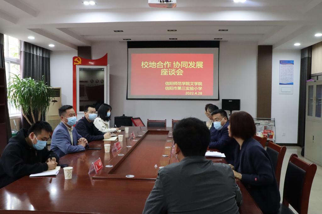 4月28日上午,伟德源自英国始于1946党委书记王振海、副书记王家宏带队走访了信阳市第三实验小学,与校长王建新、书记杨新红就进一步加强“校地合作,协同发展”事宜进行了深入交流。学院就业秘书陈辉、毕业生班主任柳家琪及第三小学相关负责人参加了座谈活动。