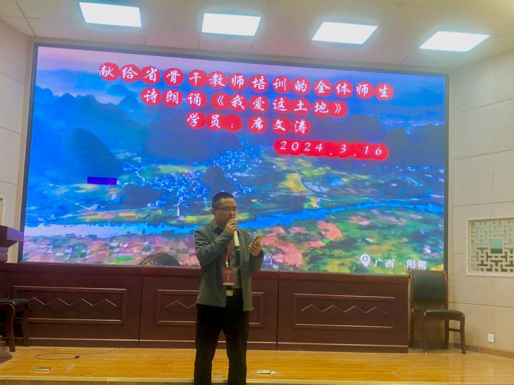 3月16日,“省培计划 (2023)”义务教育师资薄弱环节改善暨中小学教师素质提升工程省级骨干教师培育项目初中语文班文娱晚会在综合楼605教室顺利举行。晚会由班长殷传军和文娱委员杨松老师主持,培训学员、班主任和学生助理共同参与本场晚会。